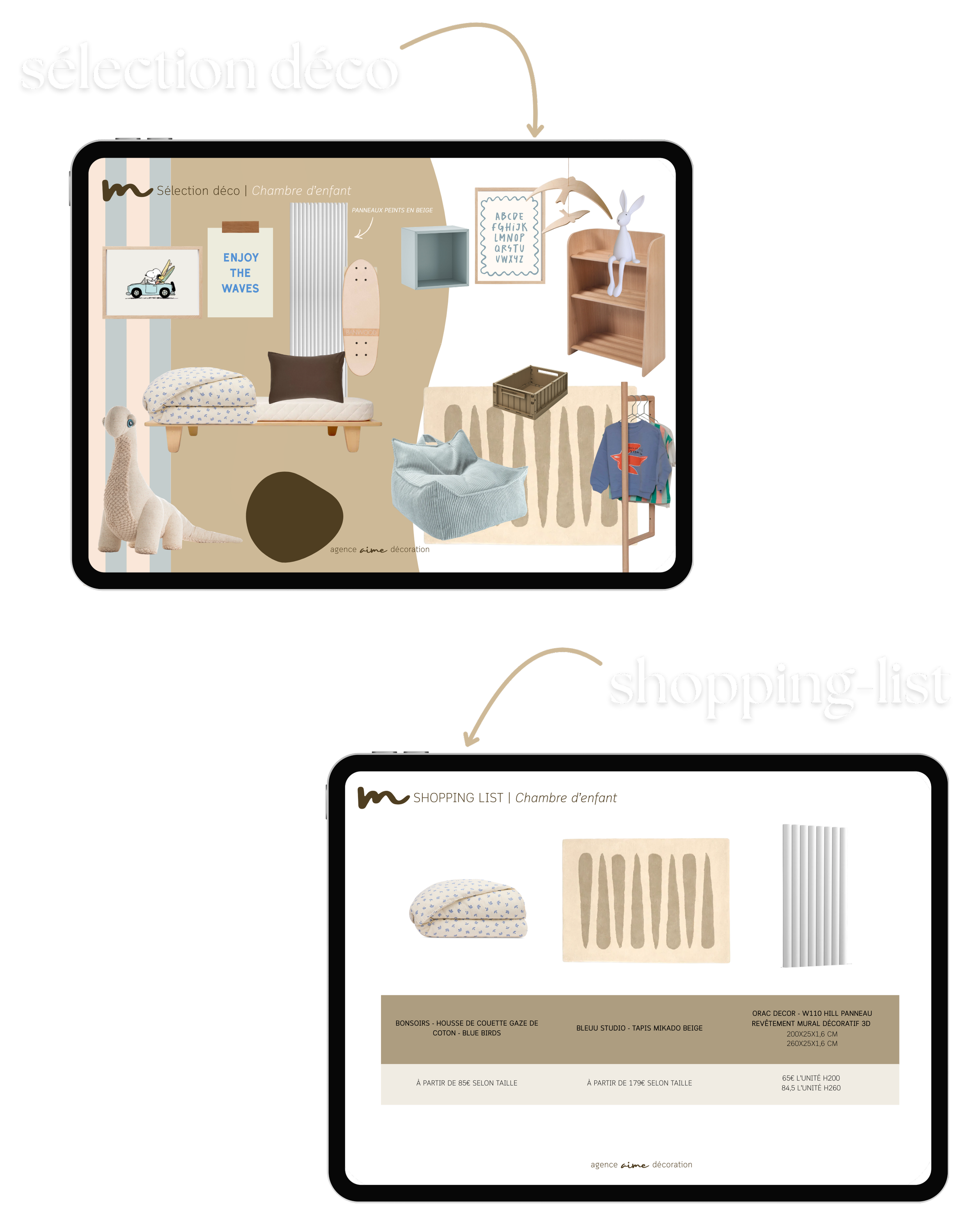 Book décoration personnalisé à l’issue de la prestation, reprenant mes conseils & idées pour mener à bien votre projet.