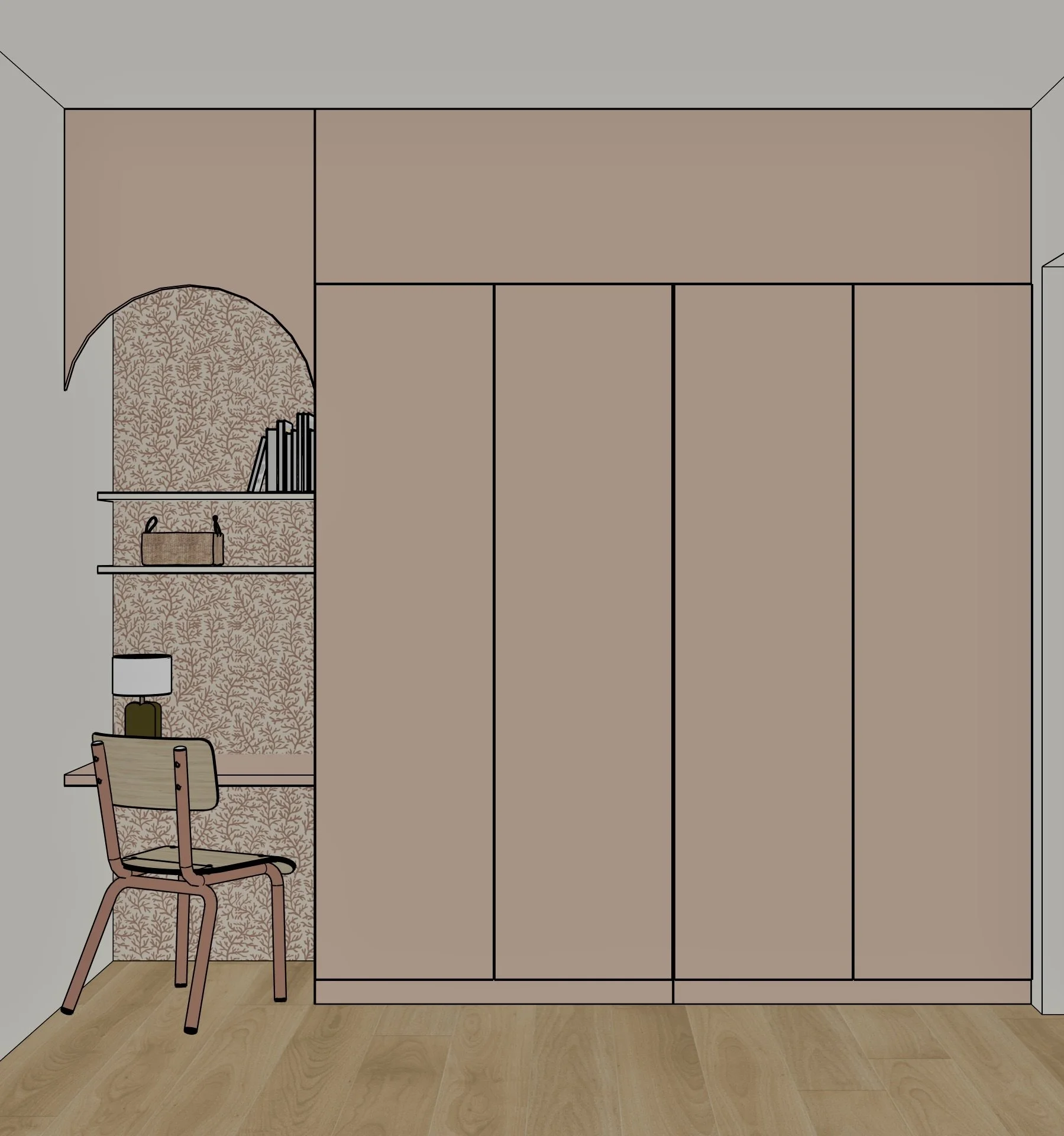 J’analyse votre espace afin d’optimiser les rangements, je veille à l’équilibre penderie/tiroirs/étagères selon votre mode de vie et vos habitudes. Je vous accompagne dans le choix des finitions (portes, poignées) pour un rendu esthétique et harmonieux. En fonction de votre budget, je peux vous proposer des finitions plus haut de gamme pour un rendu encore plus personnalisé !